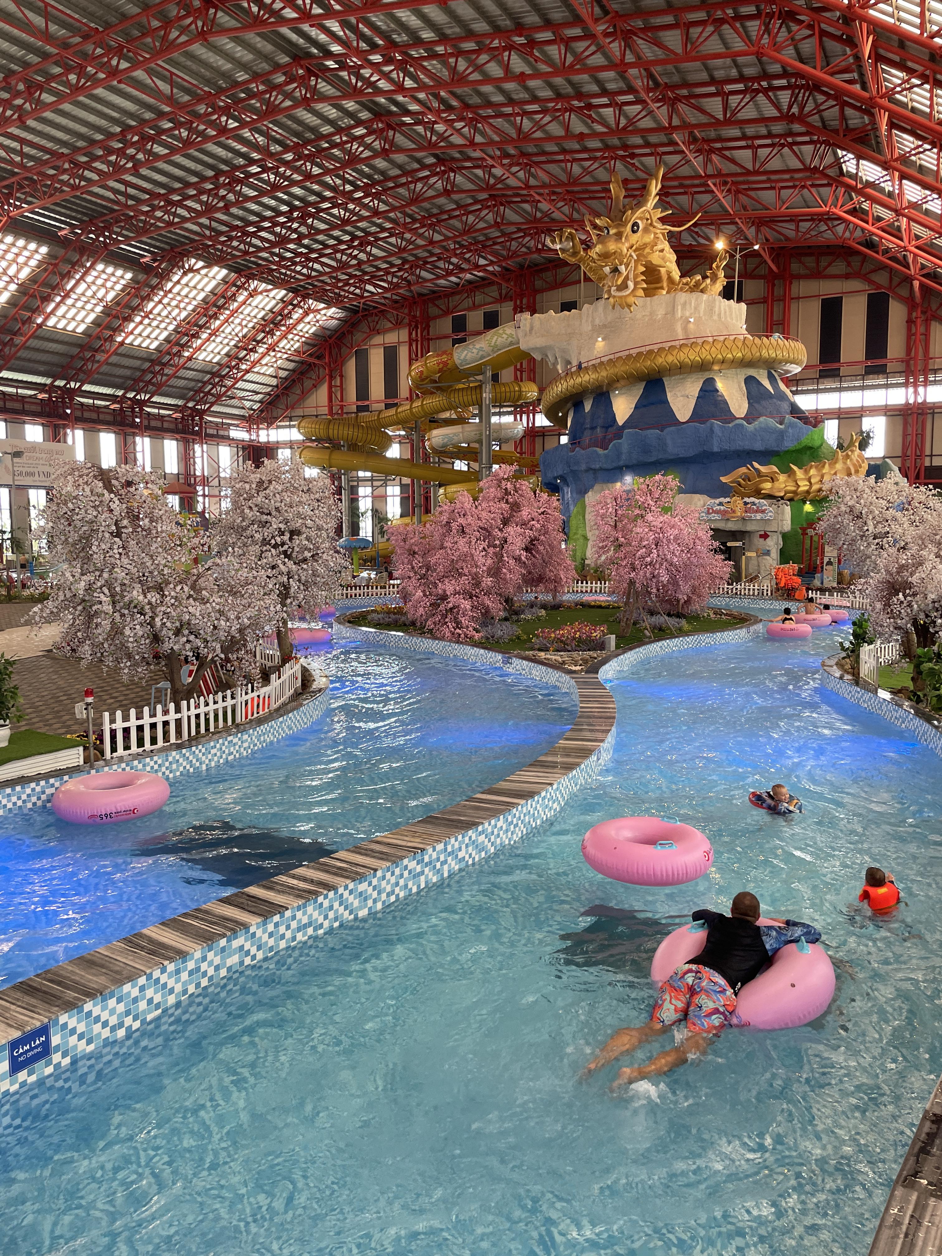 미카즈키 리조트의 자랑 바로 워터파크죠? 특히 아이와 함께하는 여행일 경우 실내외 워터파크가 완벽하게 조성되어 있어 하루 종일 물놀이를 즐길 수 있어 좋았습니다. 실내 워터파크와 온천의 경우 호텔 투숙객이 아니더라도 입장료를 지불하고 이용이 가능한데요, 그래서 베트남 현지인들도 많았습니다.