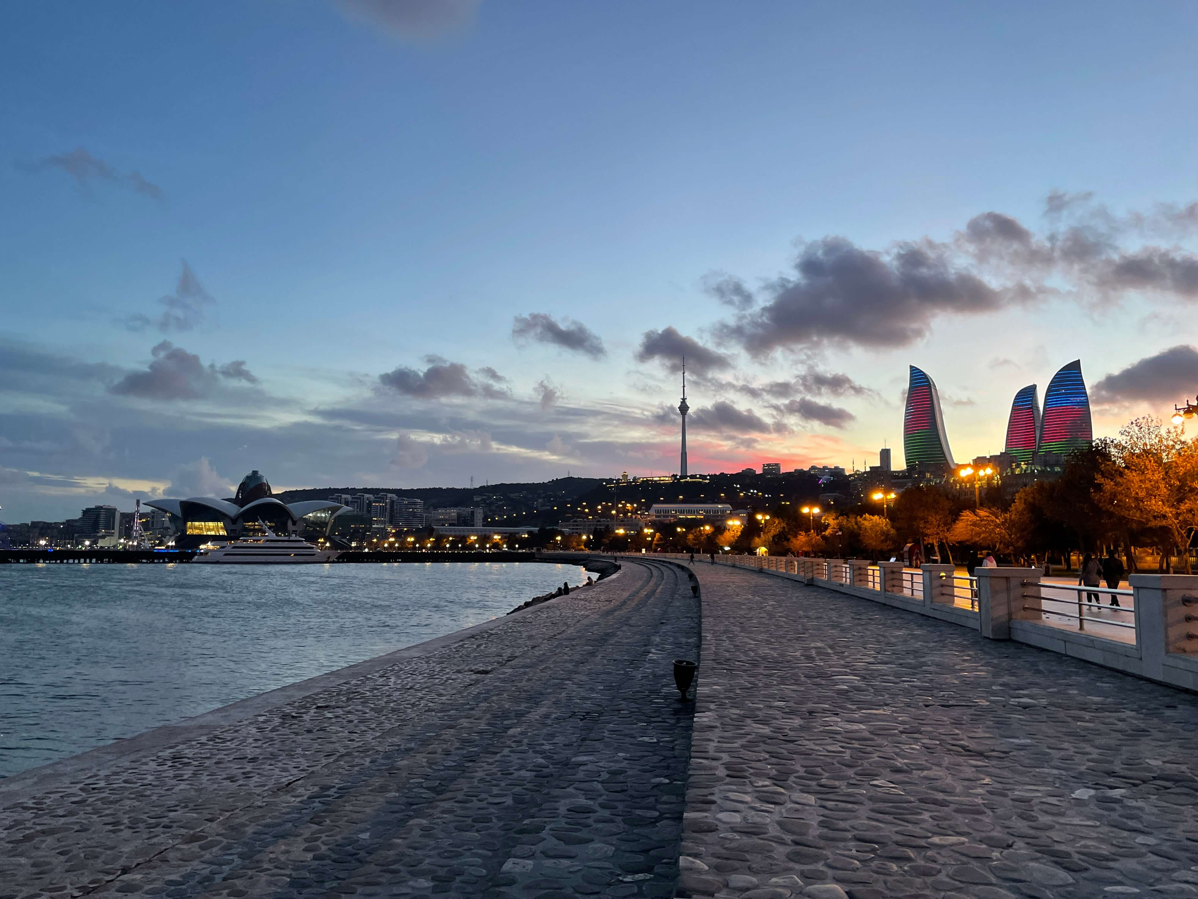 저녁에 불을 밝히는 플레임 타워와 중세 중심부인 이체리 세헤르 (Icheri Seher)가 주요 명소입니다.